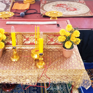 เวลา 11.00 น. ถวายภัตตาหารเพลแด่พระสงฆ์ เชิญแขกรับประทานอาหารกลางวันร่วมกัน