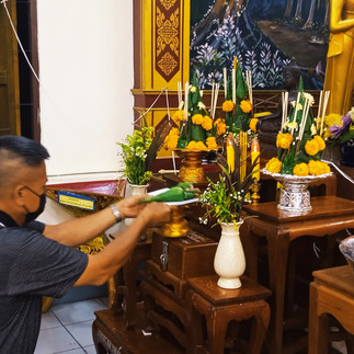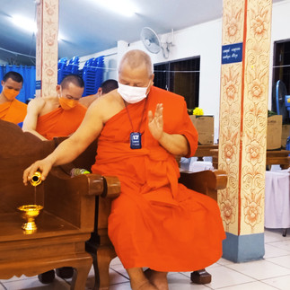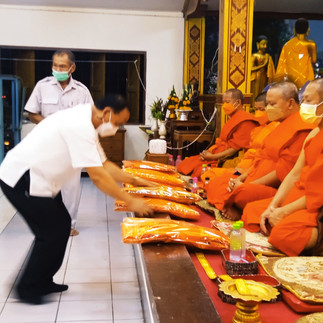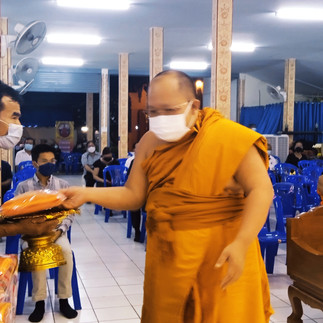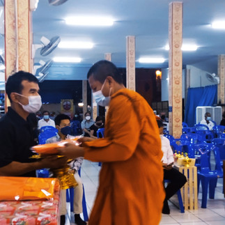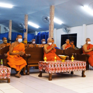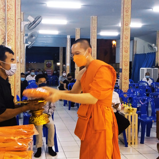 เวลา 11.00 น. ถวายภัตตาหารเพลแด่พระสงฆ์ เชิญเเขกร่วมรับประทานอาหารอาหารกลางวันร่วมกัน