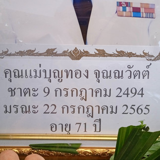 เมื่อวันที่ 25 กรกฎาคม 2565 พิธีบำเพ็ญกุศล พิธีฌาปนกิจศพคุณแม่บุญทอง จุณณวัฒน์ อายุ 71 ปี ตังบำเพ็ญกุศลศพ ณ วัดสบตุ๋ย ต.ปงแสนทอง อ.เมือง จ.ลำปาง ซึ่งจะมีพิธัฌาปนกิจศพในวันที่ 25 กรกฎาคม 2565 ณ ณาปนสถานบ้านทับหมาก ต.บ่อแฮ้ว อ.เมือง จ.ลำปาง