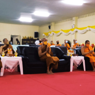 เวลา 11.00 น. ถวายภัตตาหารเพลแด่พระสงฆ์ เชิญแขกรับประทานอาหารกลางวันร่วมกัน