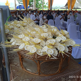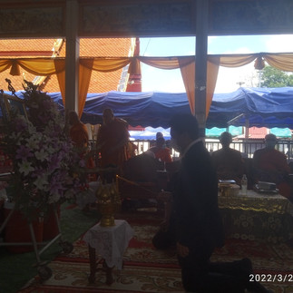 เวลา 11.00 น. ถวายภัตตาหารเพลแด่พระสงฆ์ เชิญแขกรับประทานอาหารกลางวันร่วมกัน
