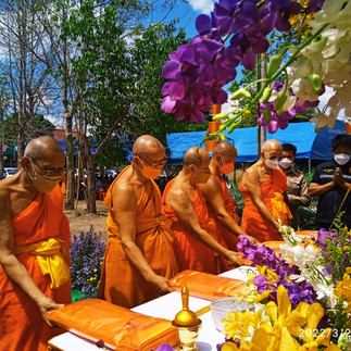 เวลา 12.30 น. เริ่มประกอบพิธีทางศาสนา ทอดผ้าไตรบังสุกุล วางดอกไม้จันทน์์