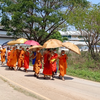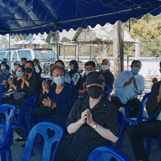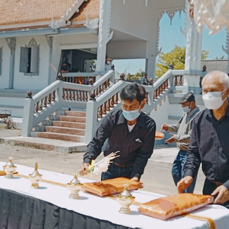 เวลา 11.00 น. ถวายภัตตาหารเพลแด่พระสงฆ์ เชิญเเขกร่วมรับประทานอาหารอาหารกลางวันร่วมกัน