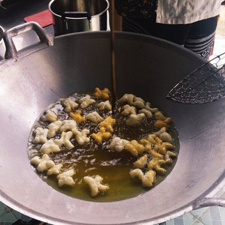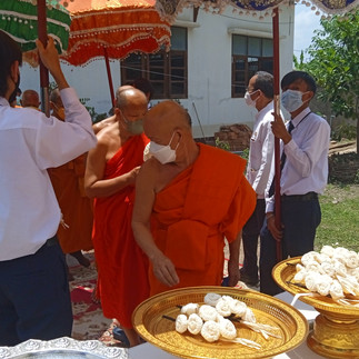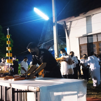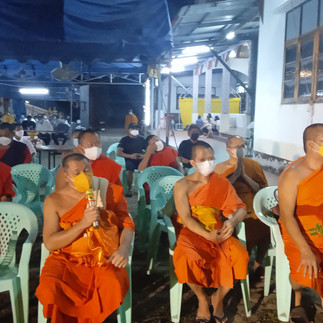 เวลา 11.00 น. ถวายภัตตาหารเพล แด่พระสงฆ์ เชิญเเขกรับประทานอาหารกลางวันร่วมกัน