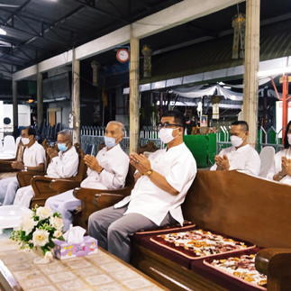 เวลา 11.00 น. ถวายภัตตาหารเพลแด่พระสงฆ์ เชิญเเขกรับประทานอาหารกลางวันร่วมกัน