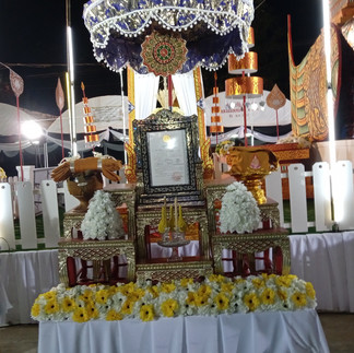 เวลา 11.00 น. ถวายภัตตาหารเพลแด่พระสงฆ์ เชิญเเขกรับประทานอาหารกลางวันร่วมกัน