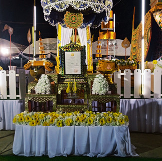 ตั้งบำเพ็ญกุศลศพ ณ วัดพระเจดีย์ซาวหลัง (พระอารามหลวง) ต.ต้นธงชัย อ.เมือง จ.ลำปาง ซึ่งมีกำหนดการประกอบพิธีทางศาสนาดังต่อไปนี้