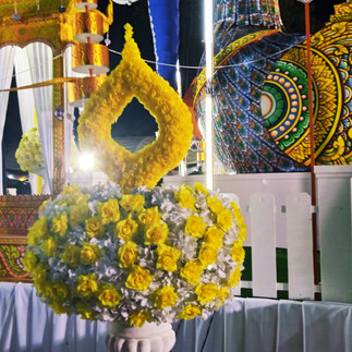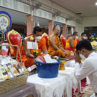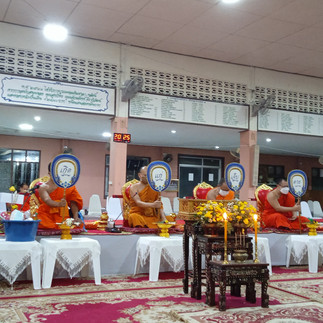 เวลา 11.00 น. ถวายภัตตาหารเพลแด่พระสงฆ์ เชิญเเขกรับประทานอาหารกลางวันร่วมกัน