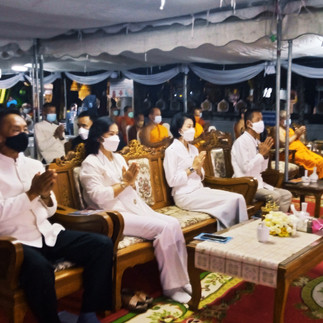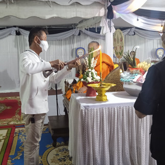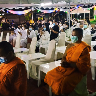 เวลา 11.00 น. ถวายภัตตาหารเพลแด่พระสงฆ์ เชิญเเขกรับประทานอาหารกลางวันร่วมกัน