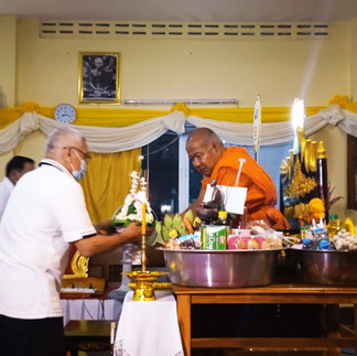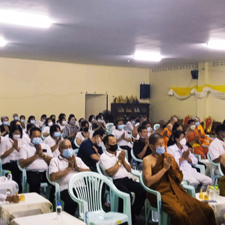 เวลา 11.00 น. ถวายภัตตาหารเพลแด่พระสงฆ์ เชิญแขกรับประทานอาหารกลางวันร่วมกัน